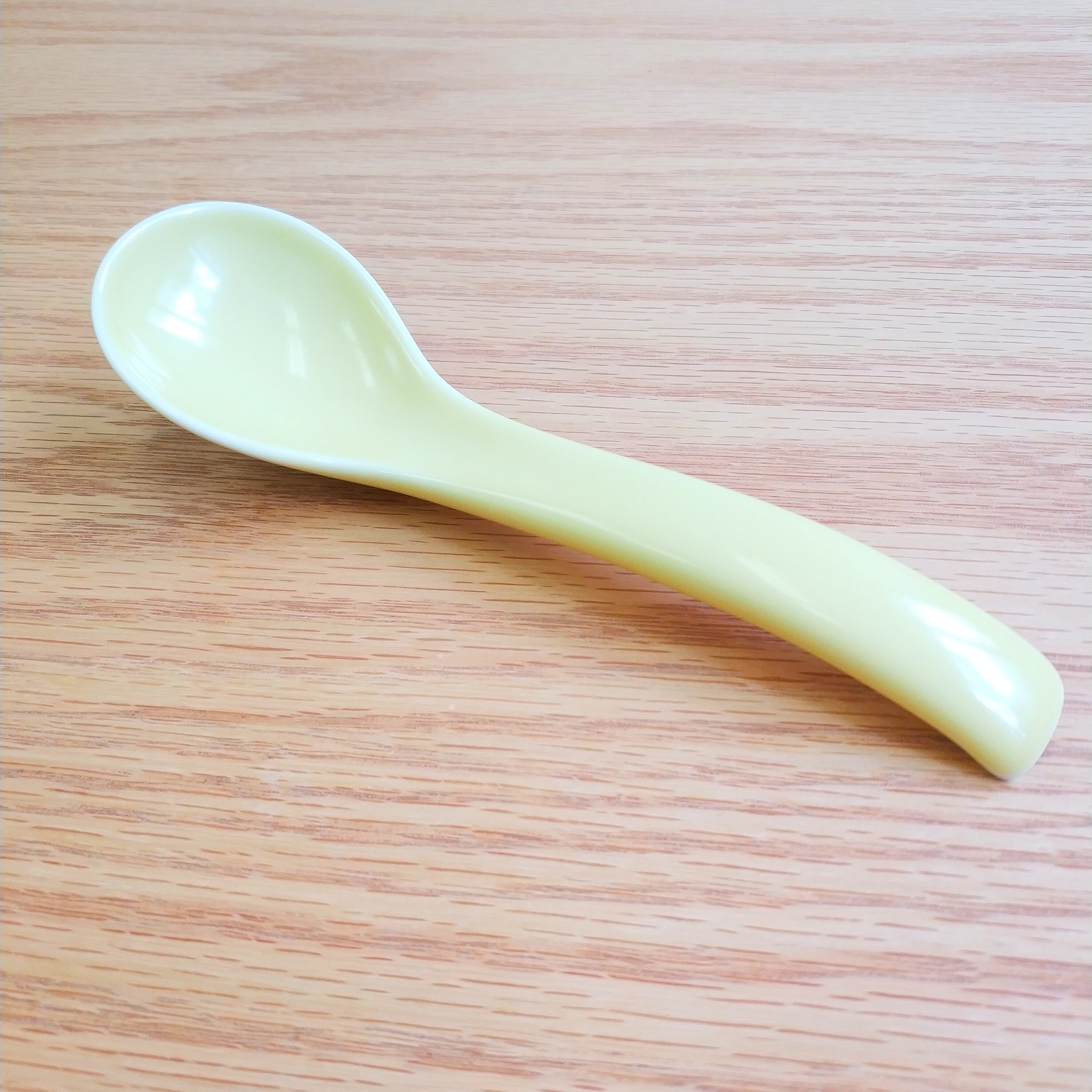 口当たりがとてもなめらかな磁器のスープスプーン。