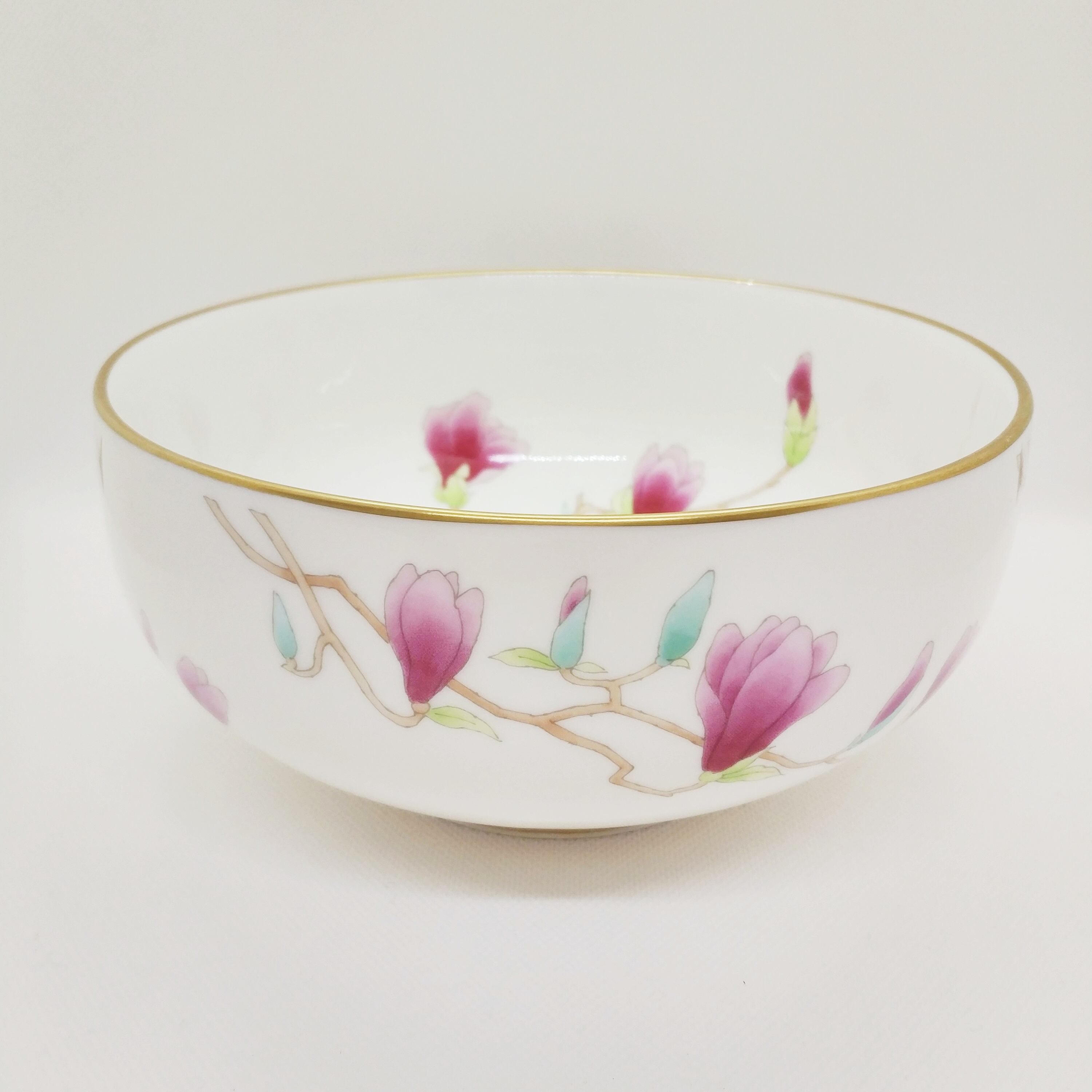白地に花木蓮の優しい絵と金の縁取りが上品な器。