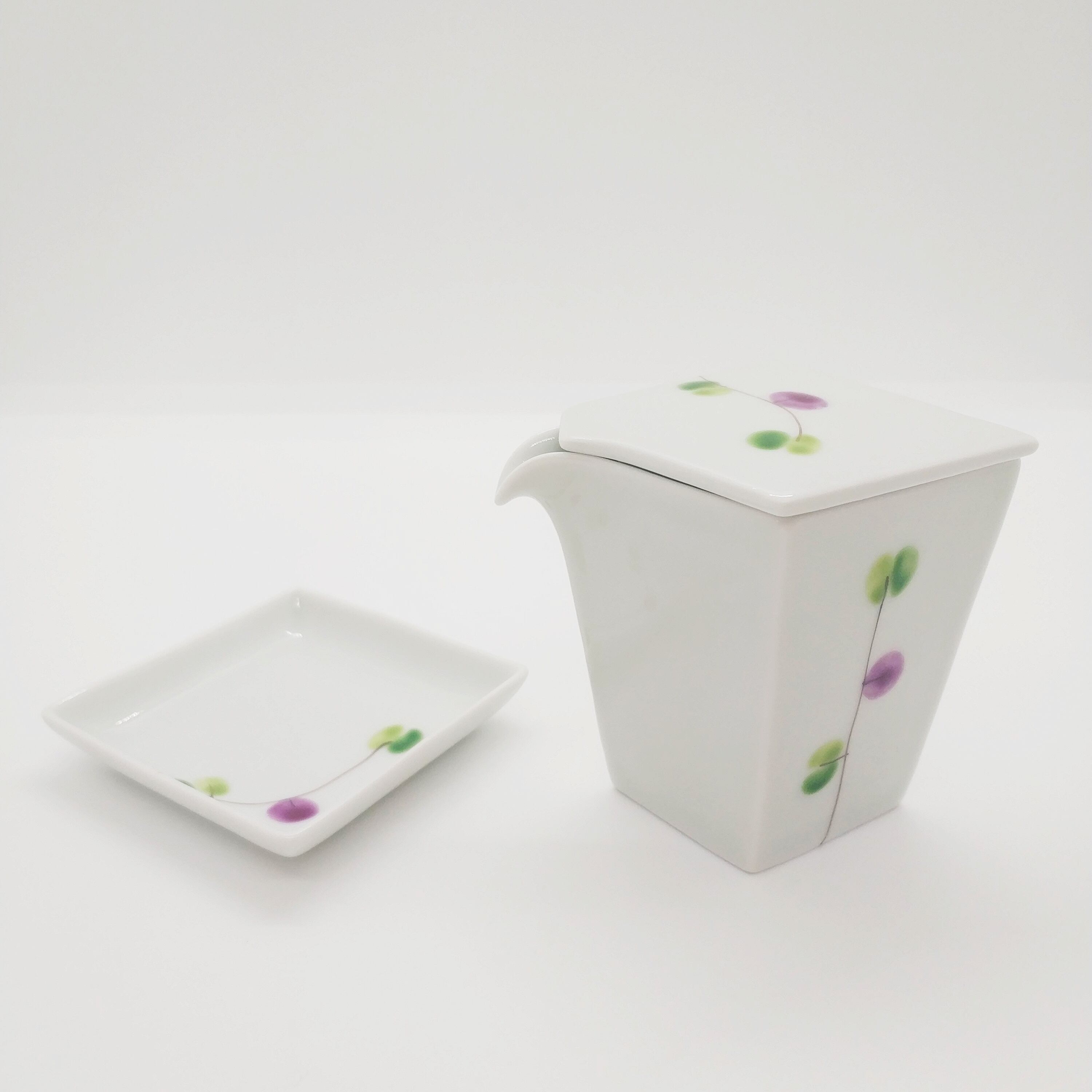 台つき汁つぎ オリーブパープル柄/有田焼/一峰窯