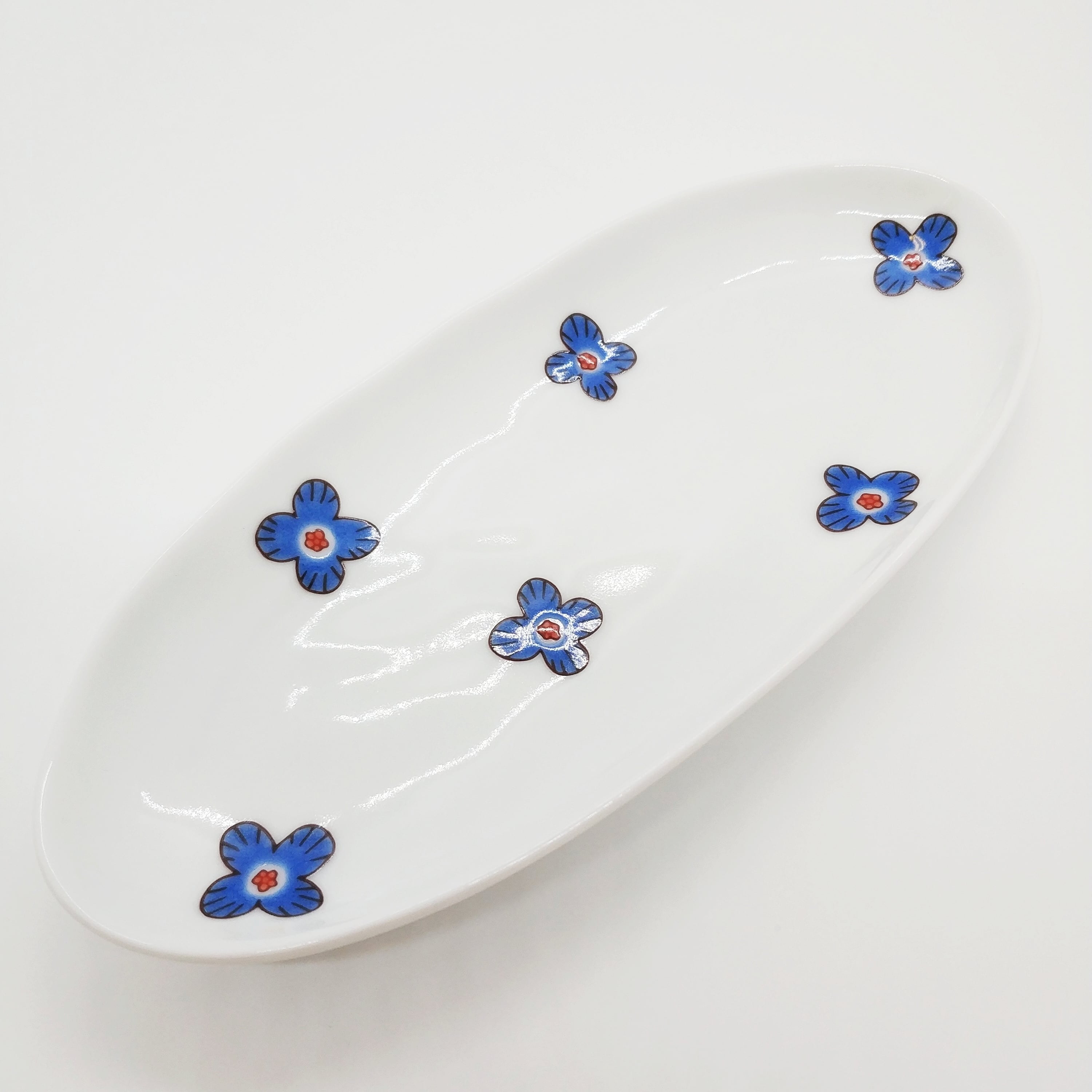 楕円皿(花ブルー) / ハレクタニ / 九谷焼