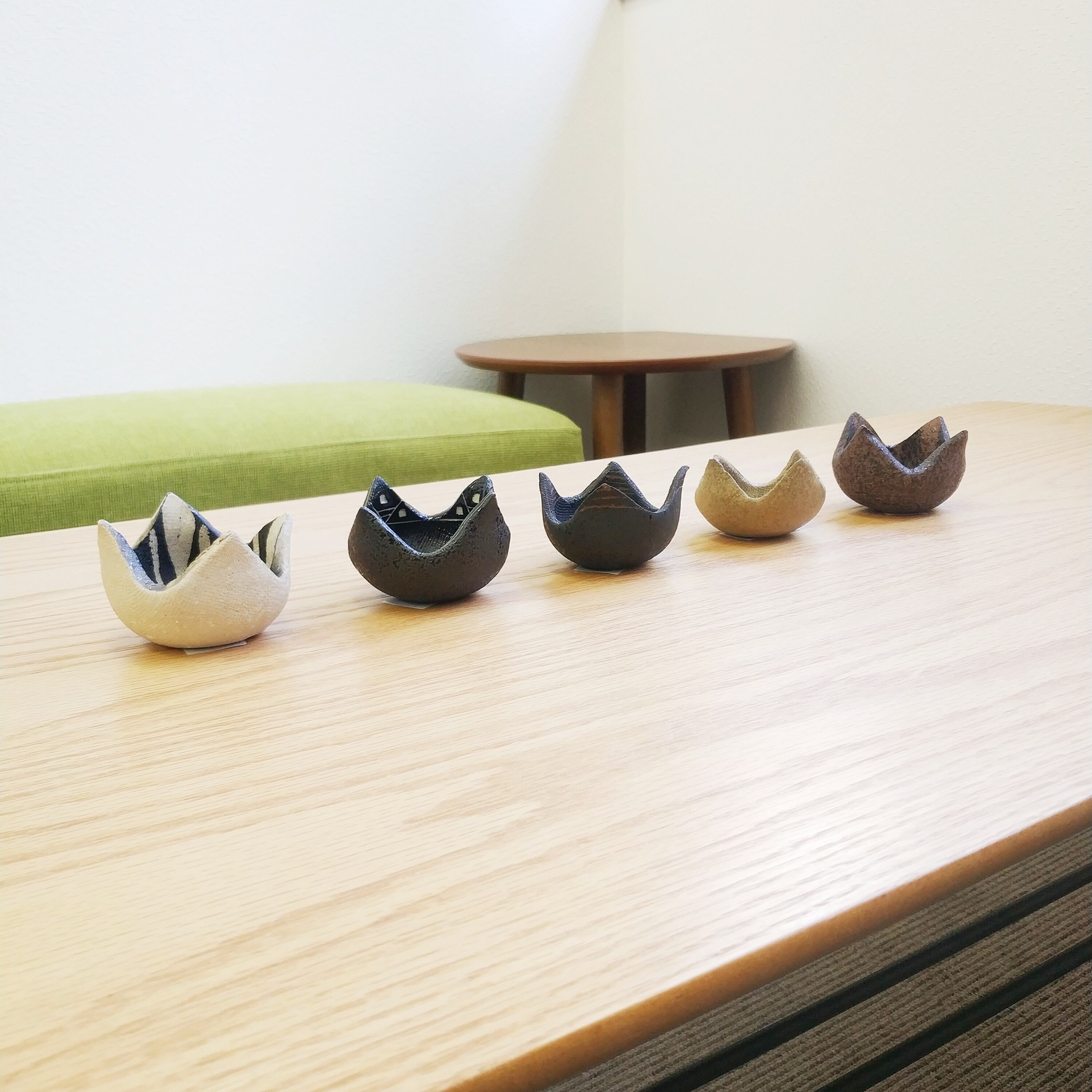 土もの本来の暖かみと丸みのある形が食卓を温かく彩ります。